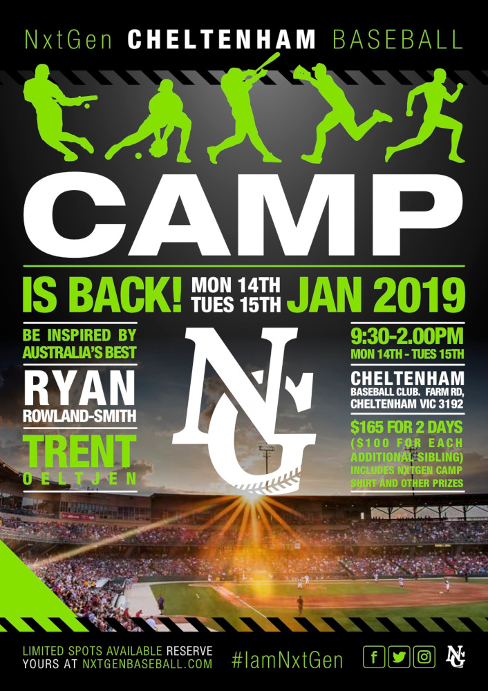 6 DAYS TO GO Attention Parents, We are less than a week away to the biggest blast your little one will have on a baseball field with 2 of Australia’s most celebrated Baseball players Trent Oeltjen & Ryan Rowland-Smith. No summer is complete with out the NxtGen Baseball Camp! We can’t wait to see you […]